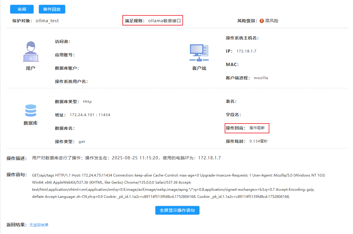 這種方案的優(yōu)勢(shì)在于,我們可以根據(jù)實(shí)際需求,制定差異化的安全策略。例如,我們可以設(shè)想這樣一個(gè)場景:允許外部用戶通過 API調(diào)用模型進(jìn)行推理(訪問api/generate/或/api/chat接口),但絕對(duì)禁止他們創(chuàng)建、刪除或修改模型(禁止訪問/api/create、/api/delete、/api/push等高危接口)。